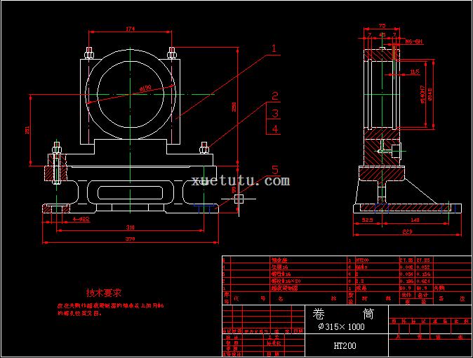 起重机用卷筒315x1000的文件格式为dwg,文件打开参考AutoCAD软件,此图纸模型关键词:起重机,卷筒,315,x1000,下载
