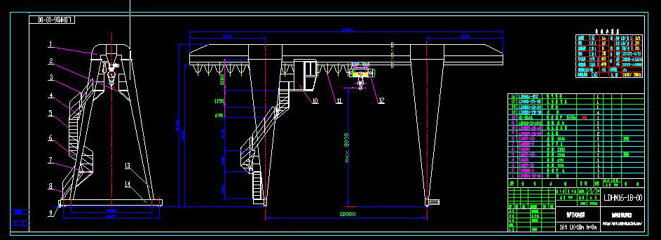 LDHM型16T葫芦门式起重机的文件格式为dwg,文件打开参考AutoCAD软件,此图纸模型关键词:起重机,葫芦,LDHM,16,下载
