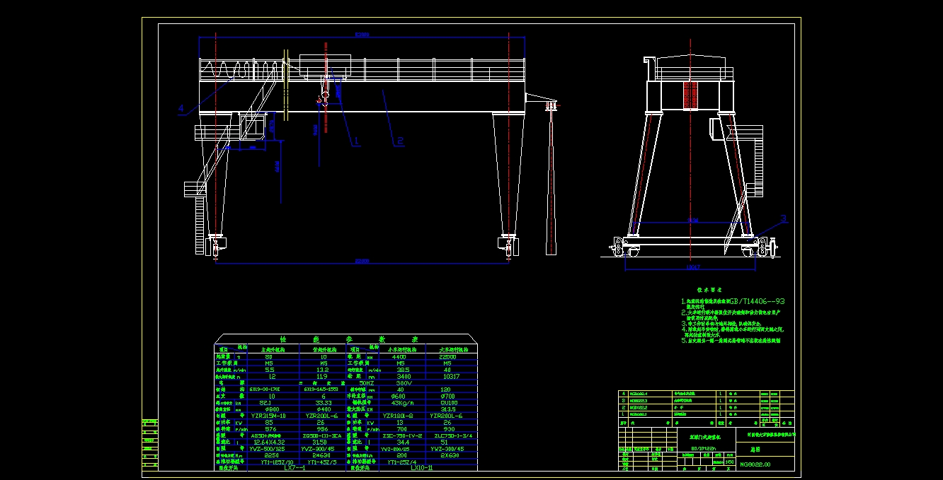 双主梁门式起重机总图的文件格式为dwg,文件打开参考AutoCAD软件,此图纸模型关键词:起重机,总图,梁门,下载