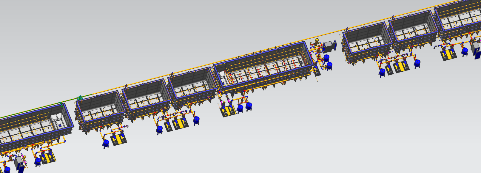 车架线 前处理电泳 水槽管路图3D模型的文件格式为stp/step,文件打开参考ProE/Creo软件,此图纸模型关键词:车架,水槽,模型,电泳,管路,下载