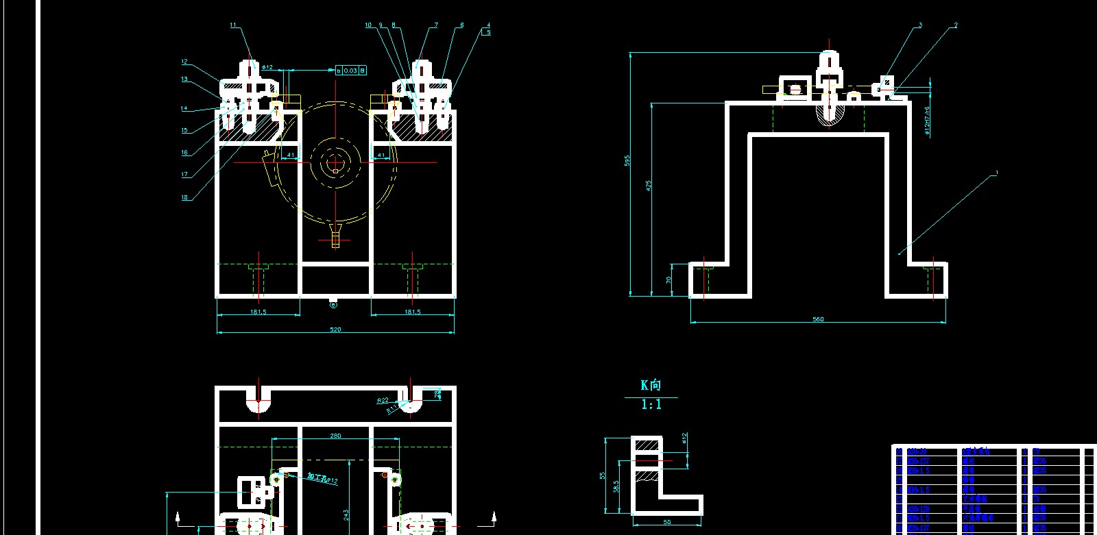 孔系加工立式组合加工机床设计的文件格式为dwg,文件打开参考AutoCAD软件,此图纸模型关键词:立式,机床,组合,加工,设计,下载