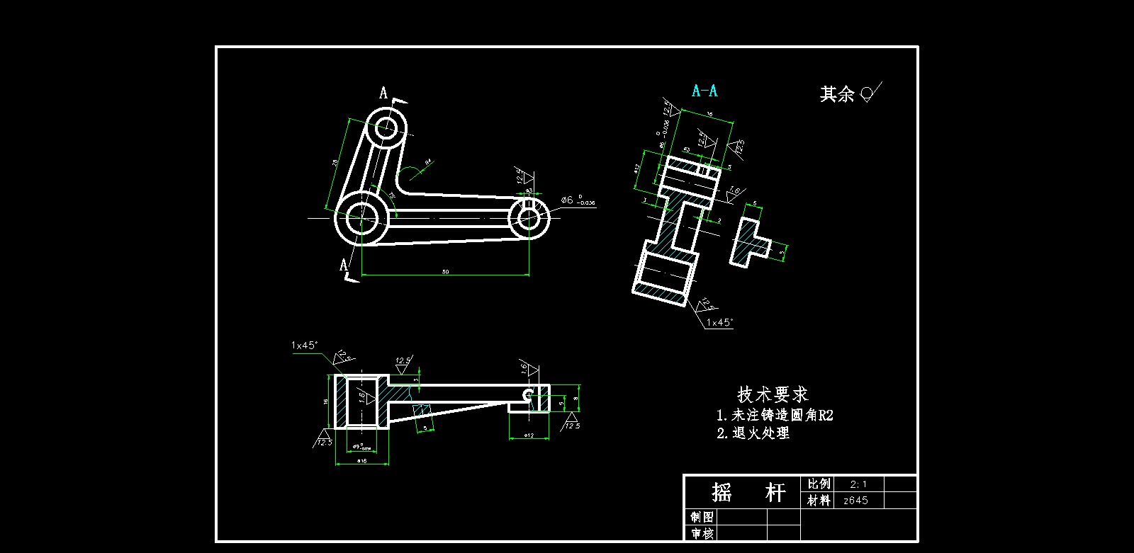 摇杆的文件格式为dwg,文件打开参考AutoCAD软件,此图纸模型关键词:摇杆,下载