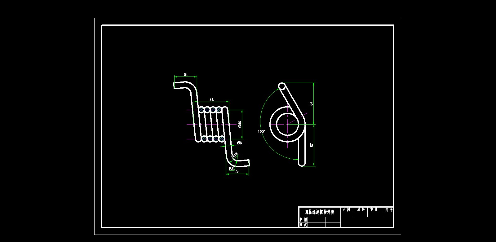 圆柱螺旋扭转弹簧的文件格式为dwg,文件打开参考AutoCAD软件,此图纸模型关键词:圆柱,弹簧,螺旋,扭转,下载
