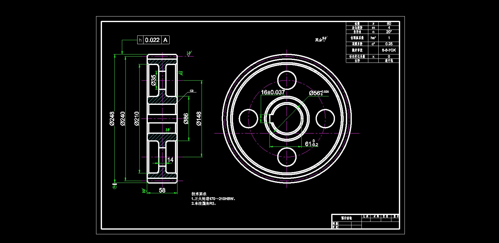 圆柱齿轮的文件格式为dwg,文件打开参考AutoCAD软件,此图纸模型关键词:圆柱齿轮,下载