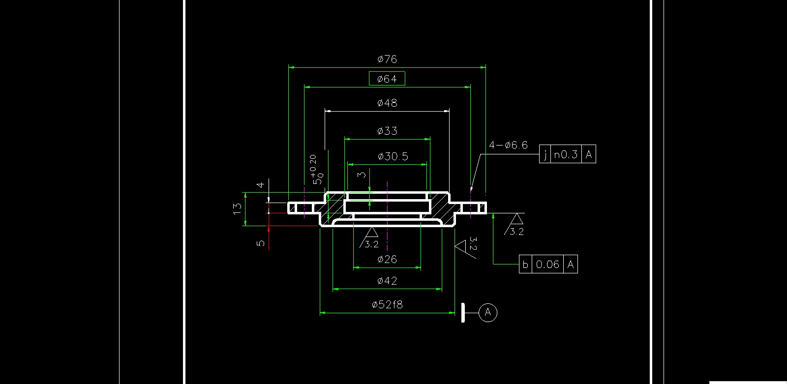 蜗杆端盖的文件格式为dwg,文件打开参考AutoCAD软件,此图纸模型关键词:蜗杆,下载