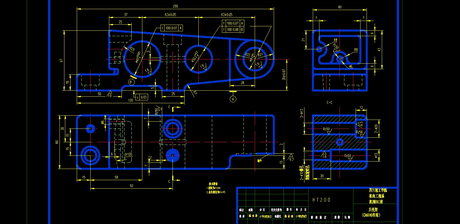 后托架零件工艺及加工Φ40、Φ30.2、Φ25.5孔夹具设计的文件格式为dwg,文件打开参考AutoCAD软件,此图纸模型关键词:夹具,零件,工艺,加工,托架,下载