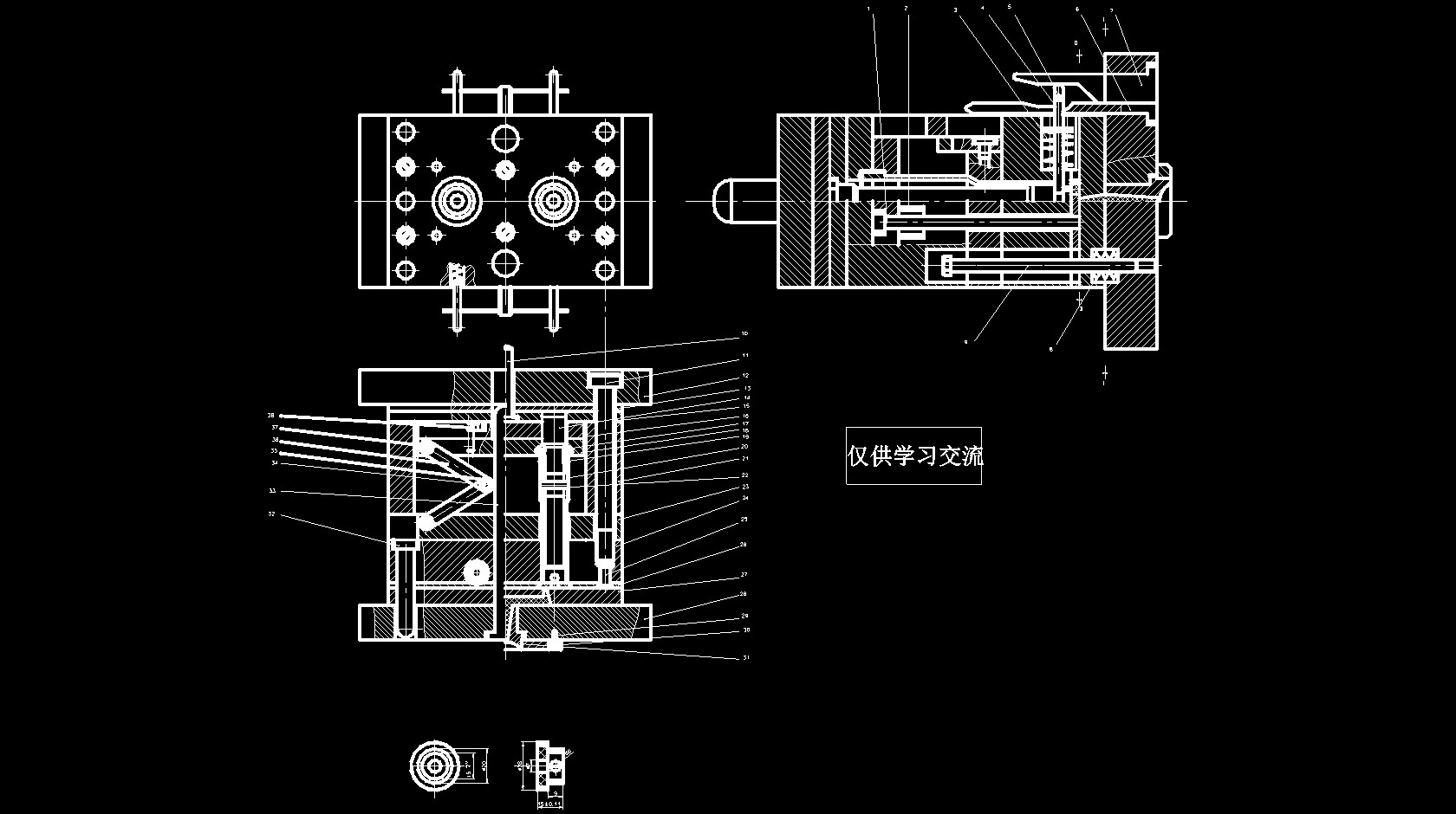 注塑模结构图的文件格式为dwg,文件打开参考AutoCAD软件,此图纸模型关键词:注塑,结构图,下载