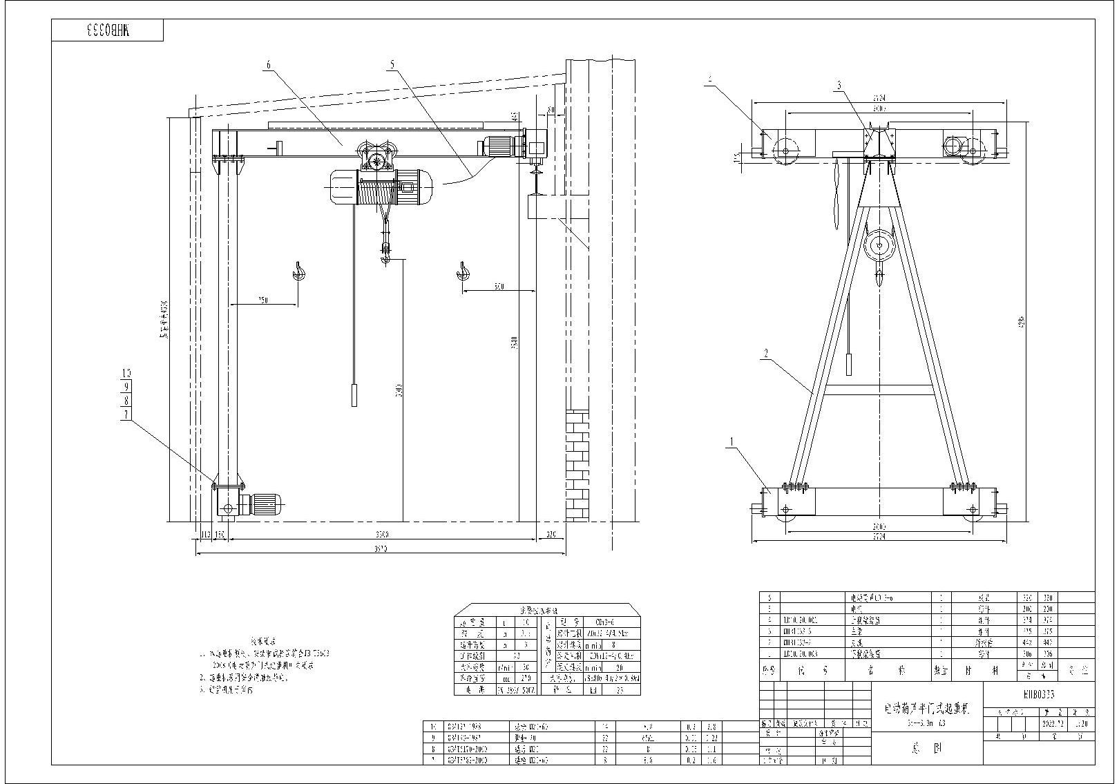 起重机 总图 电动葫芦 半门式免费下载