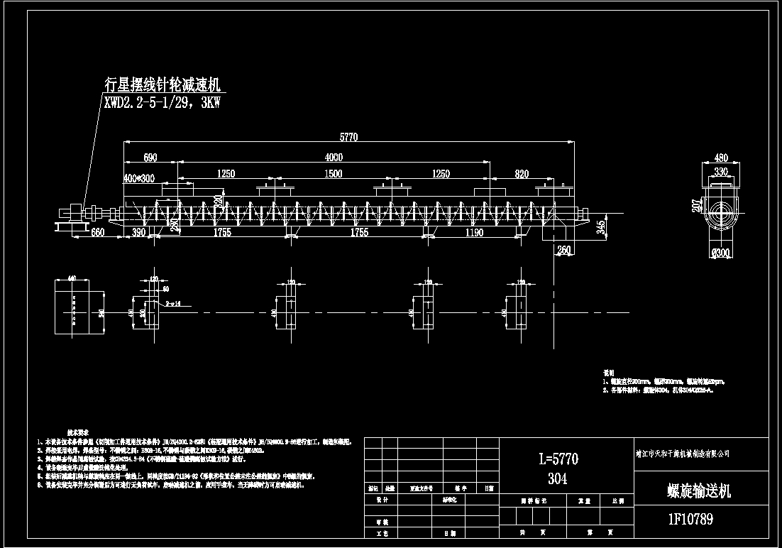 泰兴的螺旋输送机的文件格式为dwg,文件打开参考AutoCAD软件,此图纸模型关键词:螺旋,输送,泰兴,下载