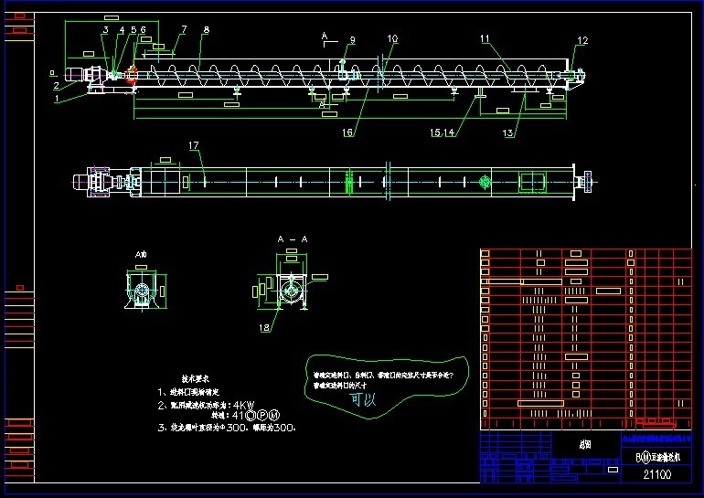 排灰螺旋输送机总图的文件格式为dwg,文件打开参考AutoCAD软件,此图纸模型关键词:螺旋,输送,总图,下载