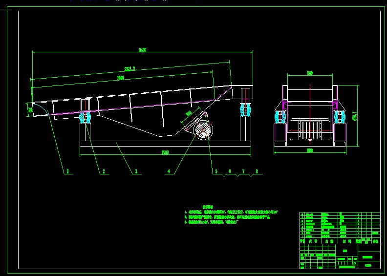GZS400 惯性振动输送机总图的文件格式为dwg,文件打开参考AutoCAD软件,此图纸模型关键词:惯性,振动,输送,总图,GZS400,下载