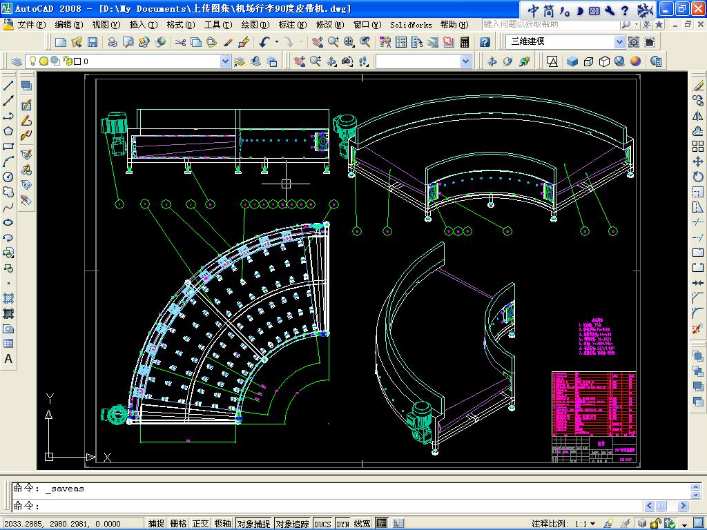 机场行李90度皮带机的文件格式为dwg,文件打开参考AutoCAD软件,此图纸模型关键词:行李,机场,皮带机,90,下载