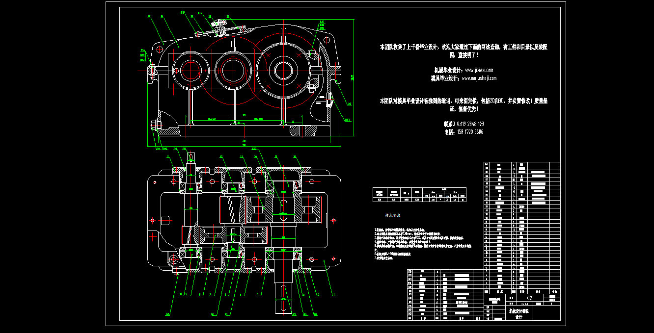 带式输送机传送装置二级圆柱齿轮减速器(6.36KW,传动比12)装配图及部分零件图的文件格式为dwg,文件打开参考AutoCAD软件,此图纸模型关键词:装配,传送,输送,装置,传动比,下载