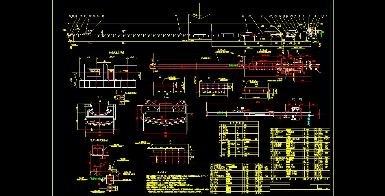 胶带输送机装配图的文件格式为dwg,文件打开参考AutoCAD软件,此图纸模型关键词:胶带,装配,输送,下载