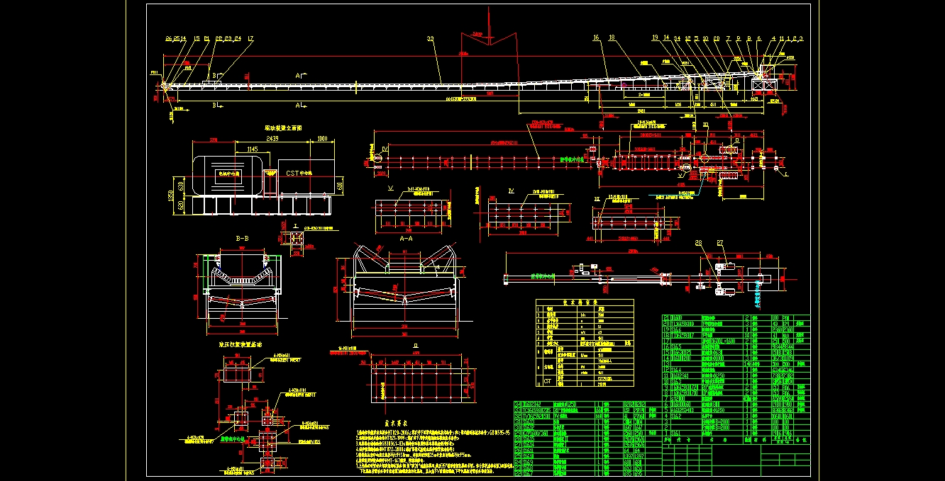 B1000 胶带输送机总图的文件格式为dwg,文件打开参考AutoCAD软件,此图纸模型关键词:胶带,输送,总图,B1000,下载