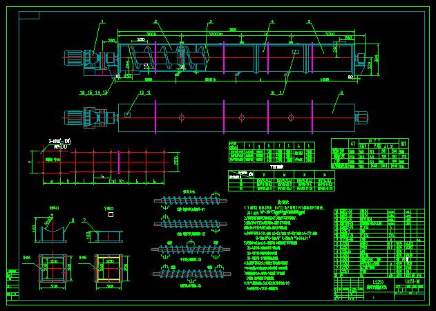 排灰螺旋输送机总图的文件格式为dwg,文件打开参考AutoCAD软件,此图纸模型关键词:螺旋,输送,总图,下载