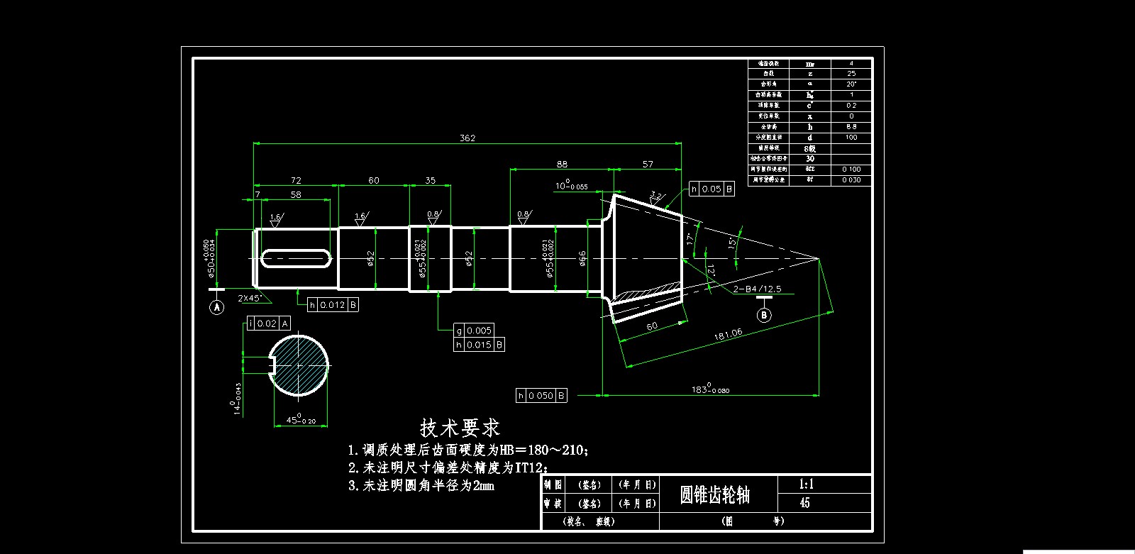 圆锥齿轮轴的文件格式为dwg,文件打开参考AutoCAD软件,此图纸模型关键词:圆锥,齿轮轴,下载