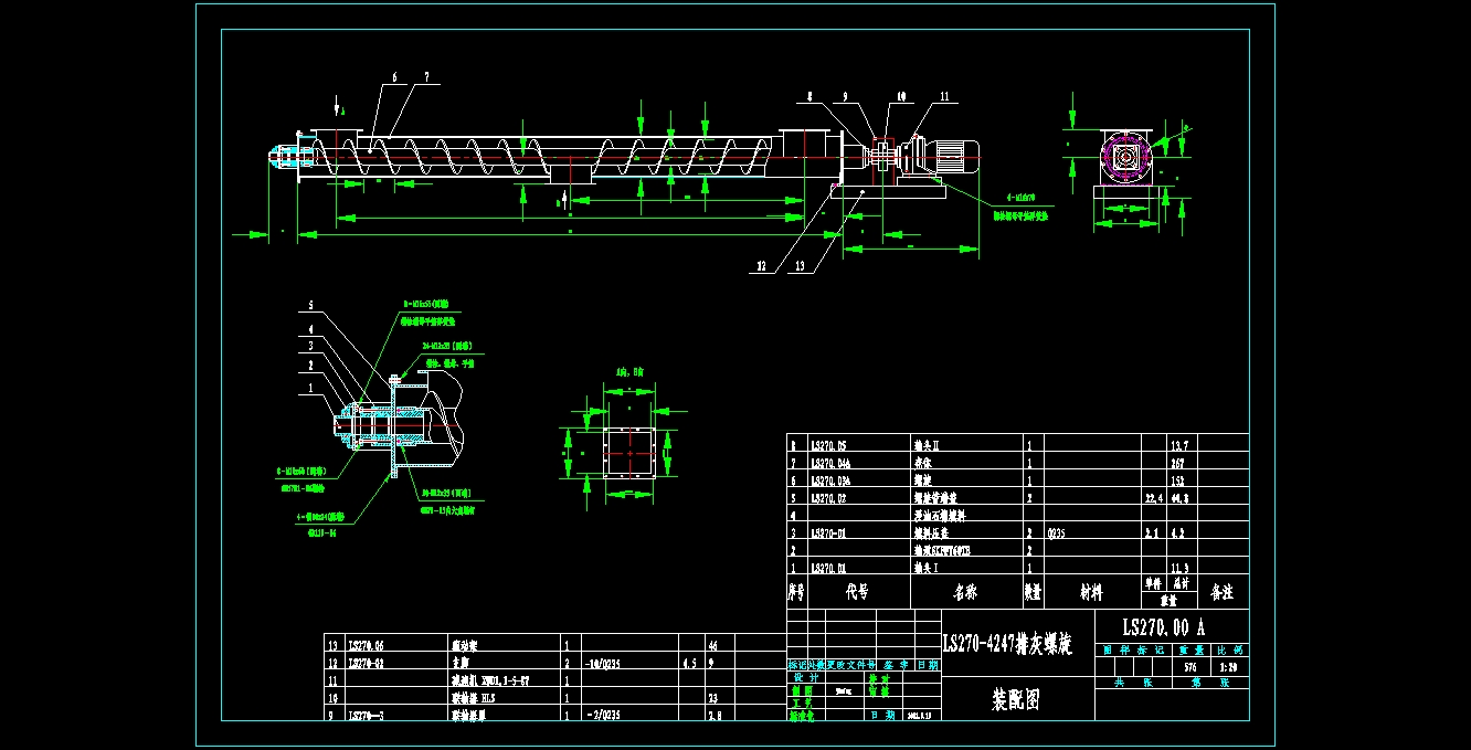 LS270-4247排灰螺旋输送机总图的文件格式为dwg,文件打开参考AutoCAD软件,此图纸模型关键词:螺旋,输送,总图,LS270,4247,下载