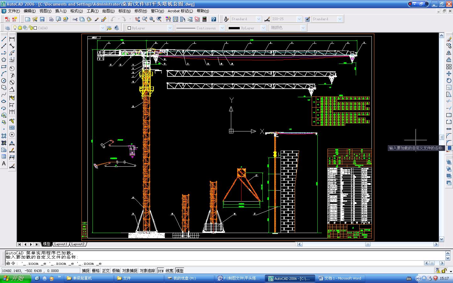 8吨自升式塔式起重机的文件格式为dwg,文件打开参考AutoCAD软件,此图纸模型关键词:塔式起重机,下载